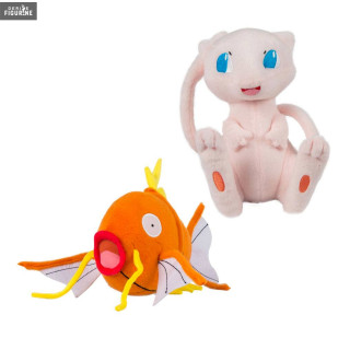 Peluche au choix représentant Mew ou Magicarpe qui mesure environ 20 centimètres de haut. Le fabricant est Tomy.