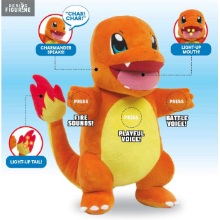 Salamèche est de retour dans une nouvelle peluche trop chouette qui parle et avec la queue et la bouche qui s'illuminent. Il vous suffit pour cela d'appuyer sur sa main ou de le faire remuer. Alors si vous voulez adopter un pokémon, c'est une bonne occasion.