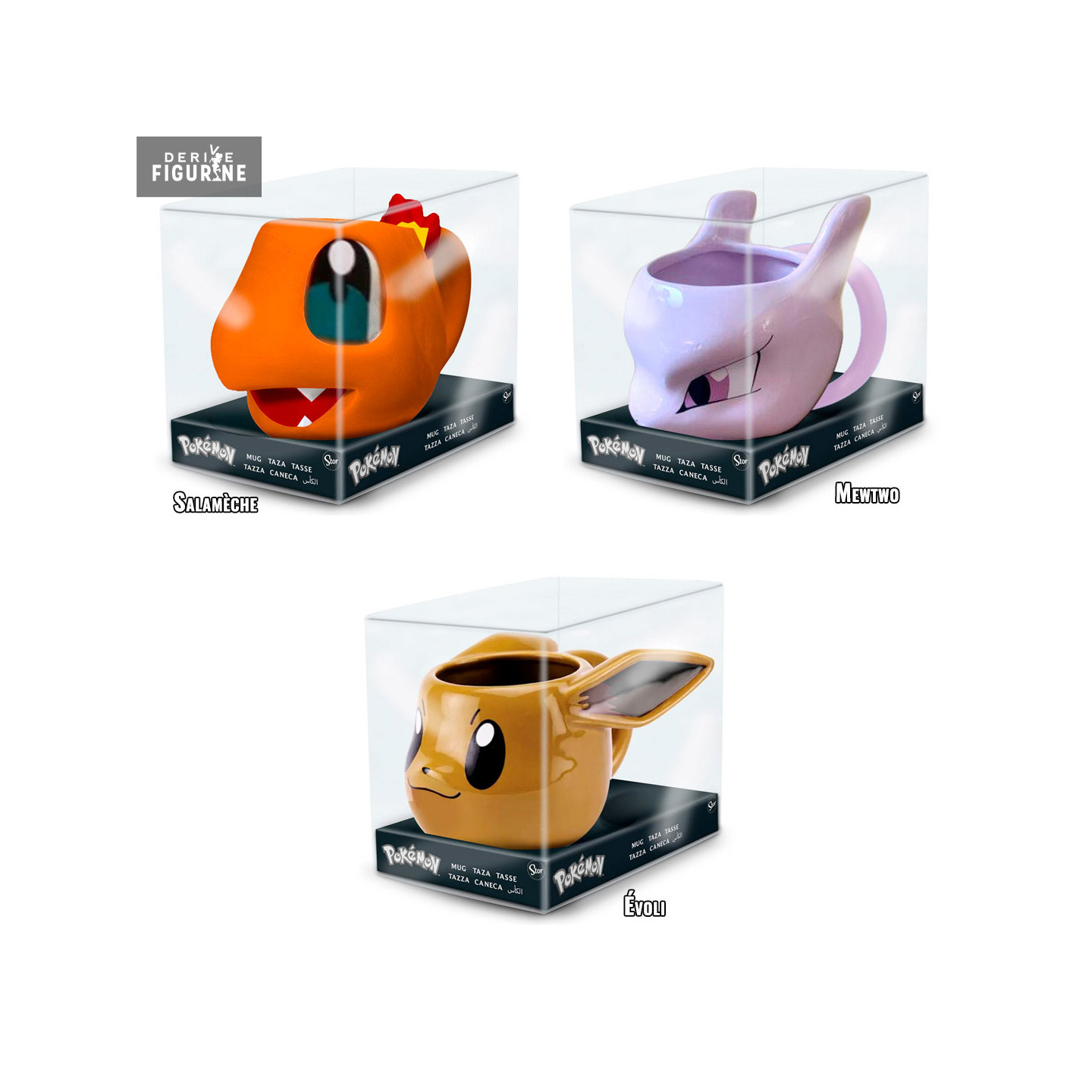 Mug officiel au choix entre Mewtwo, Évoli ou Salamèche en dolomie d'une contenance de 38,5 centilitres. Le fabricant est Storline.
