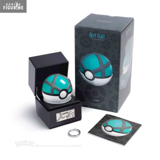 La Réplique Filet Ball, sous licence officielle Pokémon, capture l'essence de l'univers Pokémon dans un objet de collection saisissant et on a pu la découvrir dans les jeux vidéo et elle se spécialiste dans la capture de Pokémon de type eau et insecte. Avec un diamètre d'environ 8 cm, cette Filet Ball est dotée d'une fonction d'éclairage LED, qui ajoute une touche de magie en mettant en lumière son design emblématique. La taille de la boîte est d'environ 9 x 10 x 10 cm, ce qui en fait un ajout compact et captivant à toute collection Pokémon. Cette réplique soigneusement conçue inclut même les piles nécessaires pour illuminer votre expérience Pokémon.