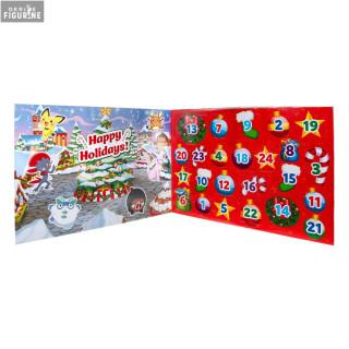 Contenu : 24 surprises incluant 14 figurines de 5 cm, 2 figurines de 7 cm et 8 accessoires festifs