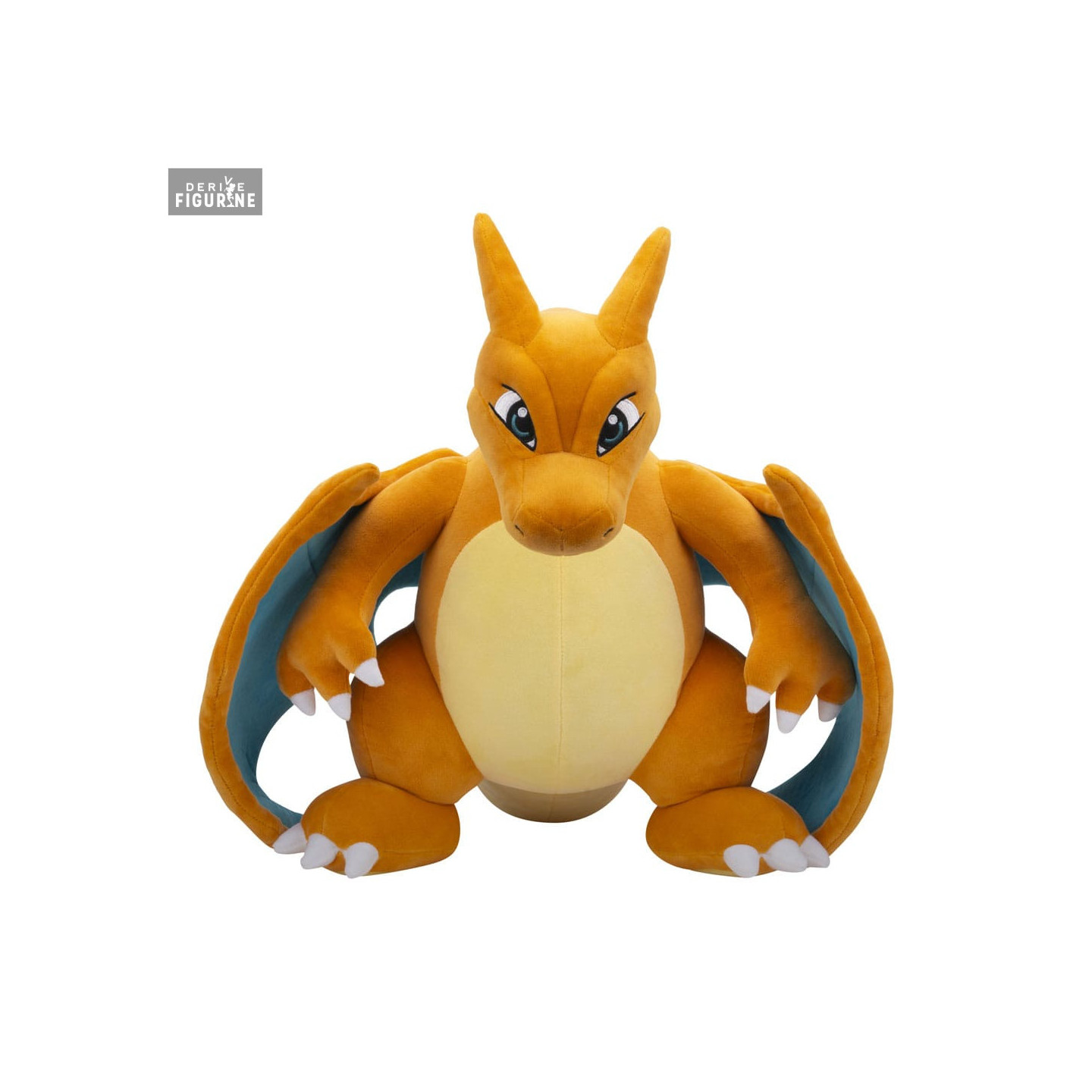 Peluche officielle de Dracaufeu mesurant environ 61 centimètres de haut. Le fabricant est Jazwares.