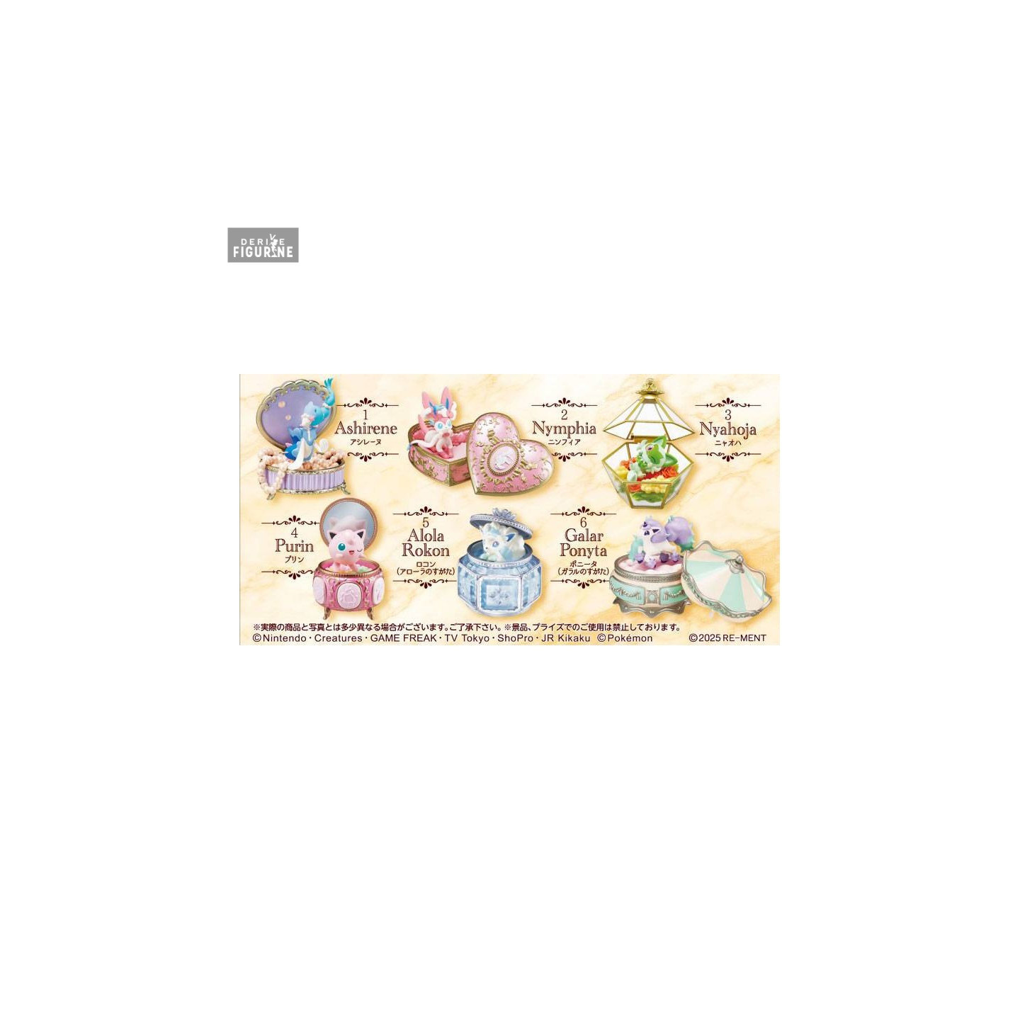Figurines officielles de Pokémon en PVC. Elles sont issues de la collection Romantic Collection. Le fabricant est Re-Ment.