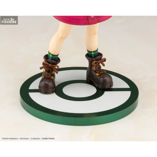 Fabriquée par Kotobukiya, cette figurine en PVC à l’échelle 1/8 mesure environ 21 cm de haut. Issue de la collection ARTFX, elle se distingue par la qualité remarquable de ses détails, des textures de la tenue de Gloria aux nuances de Larméléon. La base, inspirée des terrains de combat Pokémon, ajoute une touche authentique qui complète cette pièce incontournable pour les fans de Pokémon et les collectionneurs de figurines de haute qualité.