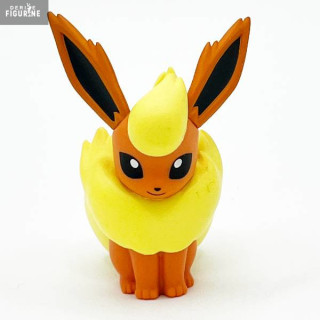 Pyroli, également connu sous le nom de Flareon dans la version anglaise, est l’une des évolutions flamboyantes d’Évoli et un Pokémon de type Feu particulièrement apprécié. Avec son pelage rougeoyant et sa crinière dorée semblable à des flammes, Pyroli incarne la chaleur et la puissance du feu. Ce Pokémon est capable d’atteindre des températures incroyablement élevées grâce à son corps qui agit comme un fourneau, lui permettant de libérer des attaques dévastatrices comme Flammèche et Lance-Flammes. Pyroli n’est pas seulement un combattant redoutable, mais également un compagnon loyal, célèbre pour son allure majestueuse et sa nature protectrice.