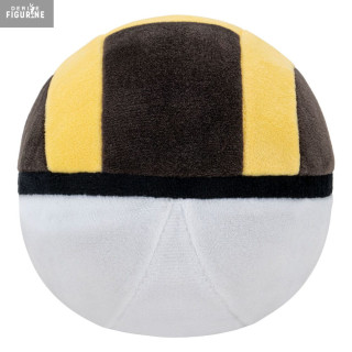 Mesurant environ 13 cm de haut, cette réplique en peluche toute douce de la célèbre Ultra Ball (Hyper Ball en VF) est fidèle au design du jeu : moitié blanche, moitié noire avec deux bandes jaunes sur le dessus et un bouton central blanc.