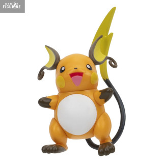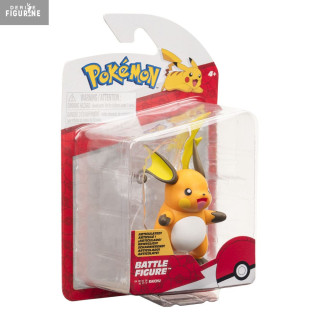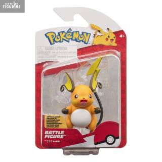 Figurine officielle de Raichu en PVC mesurant environ 5 centimètres de haut. Elle est issue de la collection Battle Figure. Le fabricant est Jazwares.
