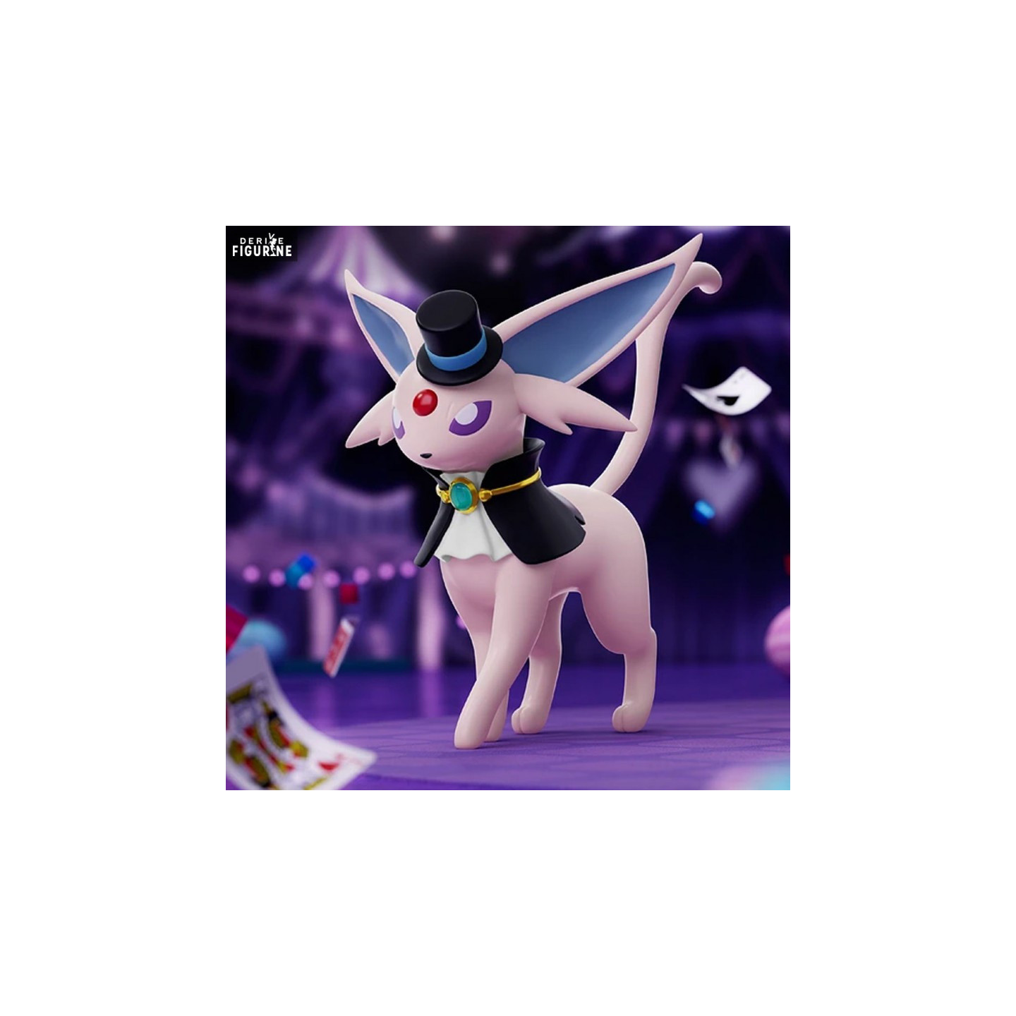 Mentali s’invite sur scène avec élégance et mystère dans cette version magicienne tirée de Pokémon Unite. Chapeau haut-de-forme, cape noire, col blanc à jabot et broche émeraude : on est loin de la simple Évolution d'Évoli. Ici, Mentali incarne le prestige d’un illusionniste de génie, prêt à éblouir son public avec ses pouvoirs psychiques.