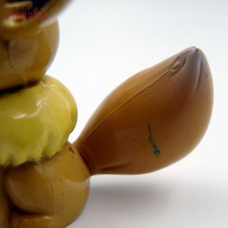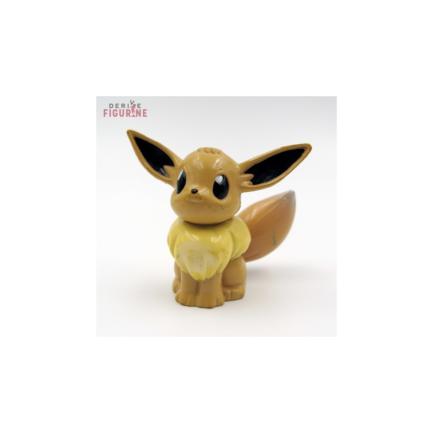 Petite figurine d'occasion et officielle du Pokémon Evoli en PVC. Elle mesure environ 4 centimètres de haut pour 4 de long. Il s’agit d'un objet d'occasion qui possède quelques marques d’usure dont un manque de peinture à l’arrière de son oreille droite et une trace verte sur la queue. Le fabricant est Tomy. Vendu sans boîte.