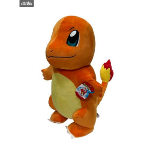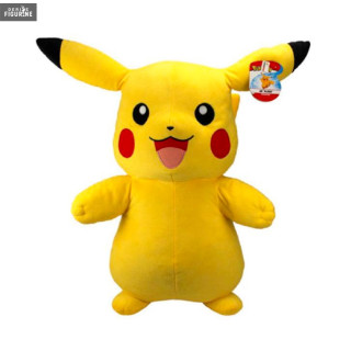 Peluche officielle au choix entre Pikachu, Salamèche ou Ronflex en 100% polyester, mesurant environ 60 centimètres de haut. Le fabricant est BOTI.