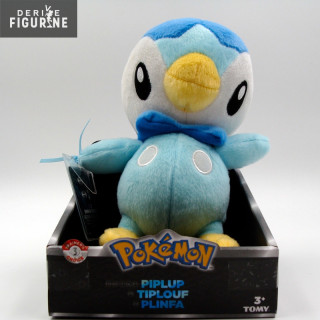 Peluche Pokémon représentant Tiplouf. Environ 17,5 centimètres. Peluche en mousse de polyuréthane et fibres de polyester. Le fabricant est Tomy.