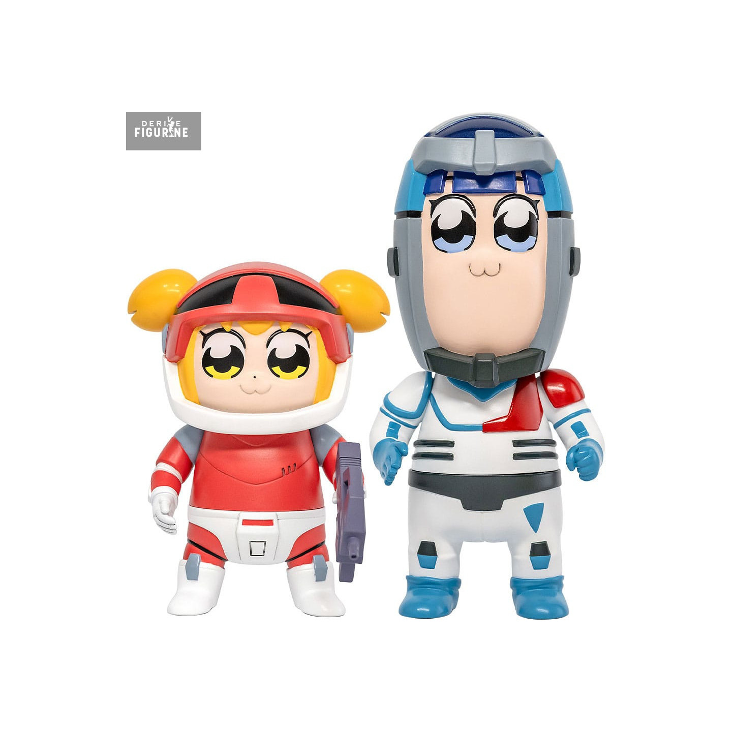 Avec leurs expressions trop mignonnes pour être honnêtes et leurs casques de l’espace tout droit sortis d’un vieux mecha des années 80, ces figurines sont à la fois un hommage et une parodie. Popuko, plus petite mais plus explosive, tient fièrement un petit pistolet laser violet. À côté, Pipimi, l’air toujours aussi impassible, affiche une stature plus élancée et une prestance toute relative… avec son regard aussi vide que cosmique.