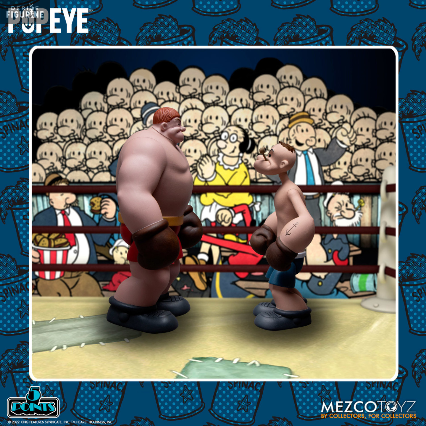 Si vous êtes l'un des fans de Popeye, vous avez forcément souvenir de son duel de boxe contre Bullo Oxheart. Ce qui est vraiment super en plus avec ce pack, c'est que vous pourrez même avoir le ring sur lequel ils s'affrontent et le public pour les encourager. Lequel des deux allez-vous encourager ?