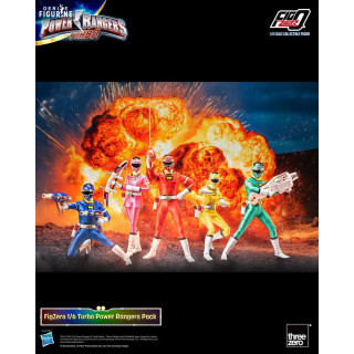 Figurines officielles des Power Rangers Turbo mesurant environ 30 centimètres de haut, à l'échelle 1/6. Elles sont issues de la collection FigZero. Le fabricant est ThreeZero.