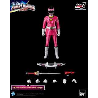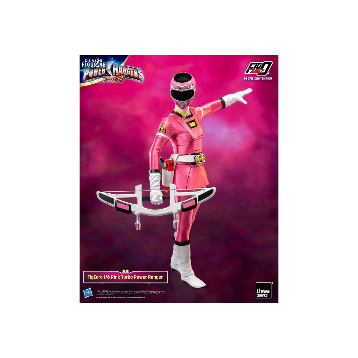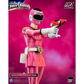 Figurine officielle du Pink Turbo Power Ranger mesurant environ 30 centimètres de haut, à l'échelle 1/6. Elle est issue de la collection FigZero. Le fabricant est ThreeZero.