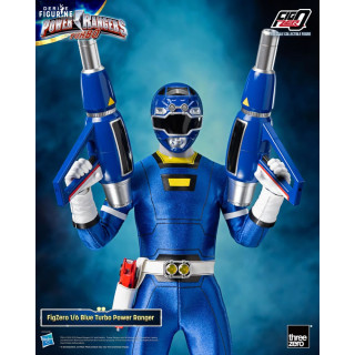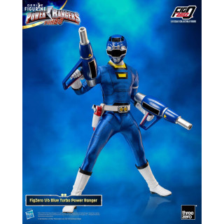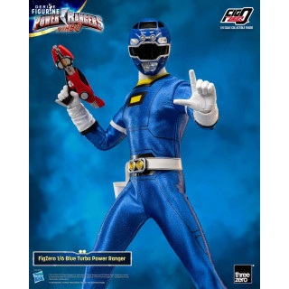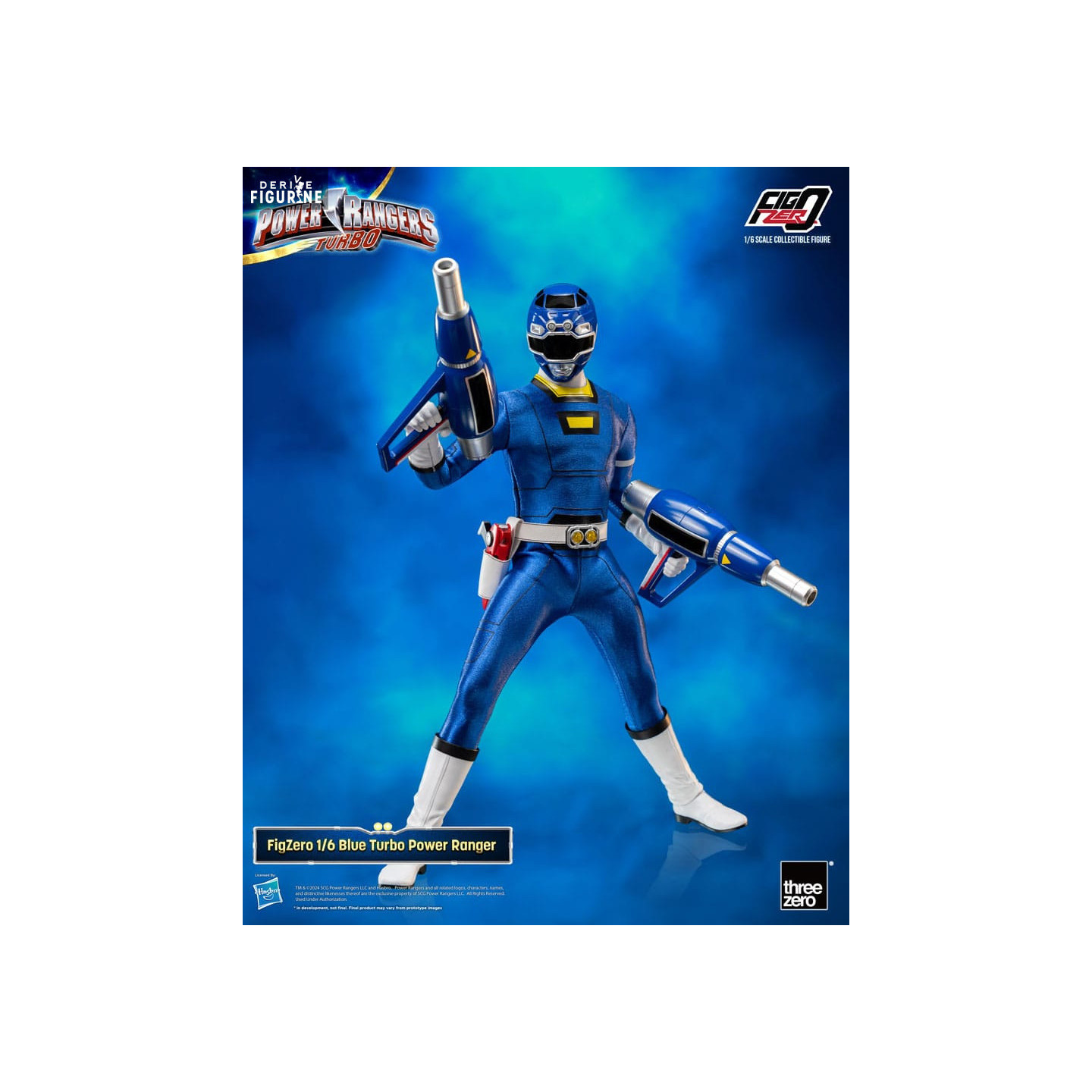 Figurine officielle du Blue Turbo Power Ranger mesurant environ 30 centimètres de haut, à l'échelle 1/6. Elle est issue de la collection FigZero. Le fabricant est ThreeZero.