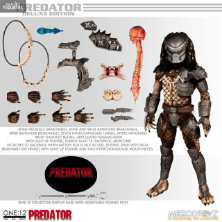 Mezco se lance sur la franchise Predator en proposant la figurine Deluxe Edition de la collection One:12 de l'illustre créature qu'est le Predator. Cette réalisation haut de gamme dispose de plusieurs features en plus de finitions au top du top comme par exemple, des fonctionnalités lumineuses, plusieurs visages et accessoires ! C'est la figurine ultime de ce monstre culte qui vous permettra de l'exposer d'une multitude de manières différentes.