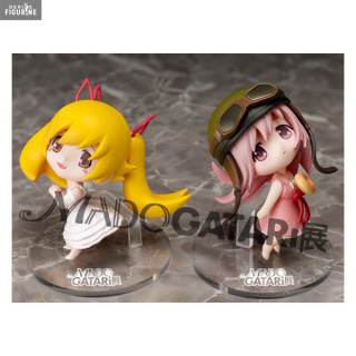 Figurines officielles au choix entre Homura Akemi & Hitagi Senjyogahara (A), Madoka Kaname & Shinobu Oshino (B) ou Mami Tomoe & Tsubasa Hanekawa (C) en PVC mesurant environ 7 centimètres de haut. Le fabricant est Aniplex.