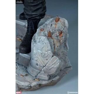 Frank Castle à soif de justice, mais surtout de vengeance suite au meurtre de sa famille. Pour cela, il est prêt à mettre tous les moyens en sa possession et le premier est celui de devenir le Punisher. Si vous regardez attentivement cette statuette, vous pourrez remarquer que la fumée qui s'échappe de son arme à la forme de son logo. A noter qu'il s'agit d'une édition limitée, finie et peinte à la main.