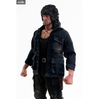 Figurine officielle de John Rambo mesurant environ 30 centimètres de haut, à l'échelle 1/6. Le fabricant est Threezero.