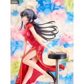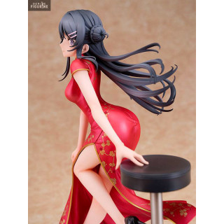 Figurine officielle de Mai Sakurajima, Chinese Dress en PVC mesurant environ 22 centimètres de haut, à l'échelle 1/7. Le fabricant est Wing.