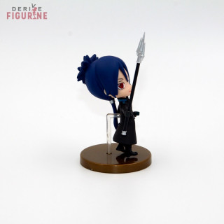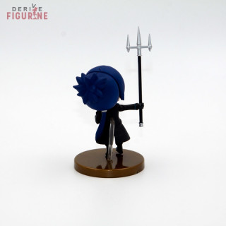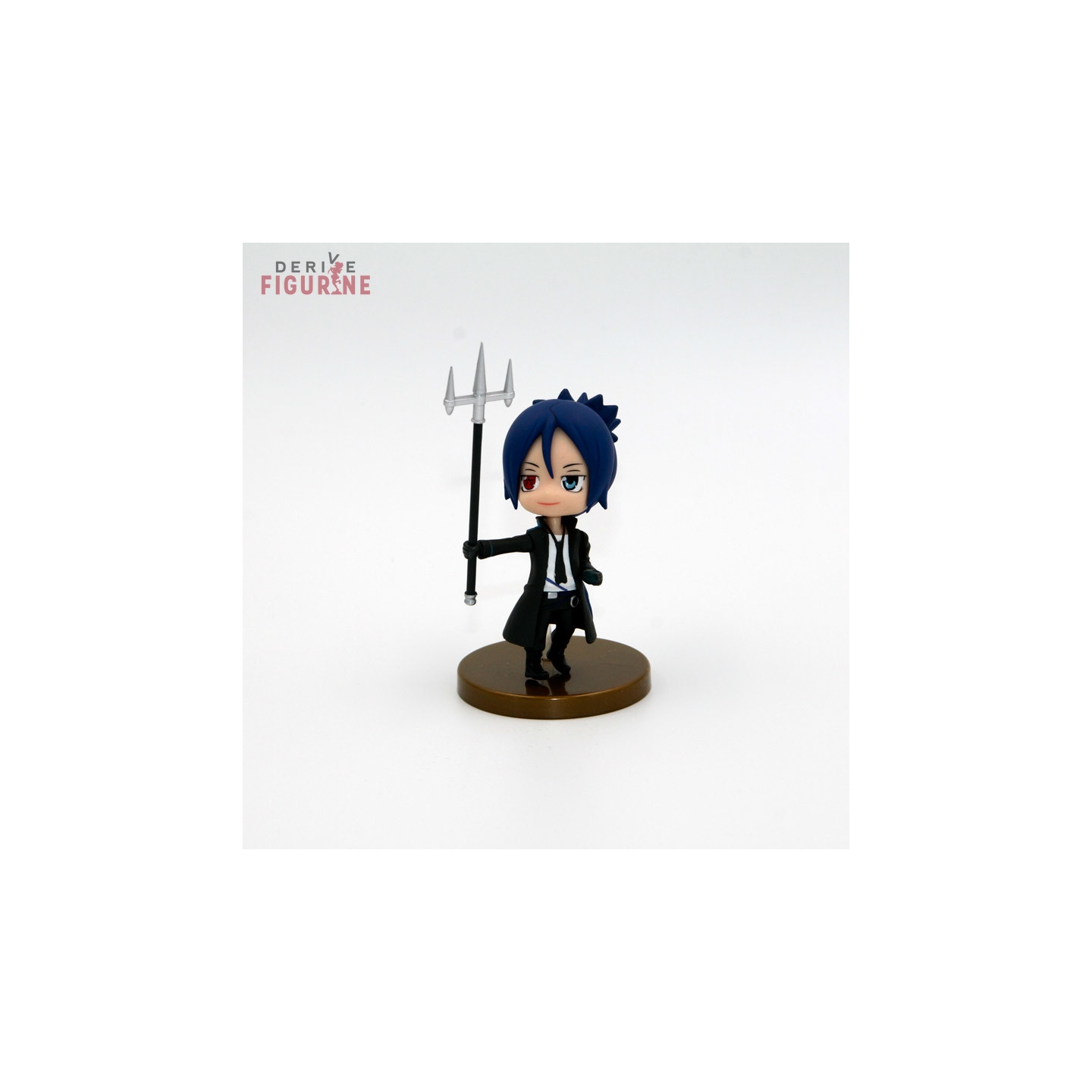 Figurine d'occasion et officielle de Rokudou Mukuro en PVC qui mesure environ 7,5 centimètres de haut. Sur un socle doré, le personnage tient son trident dans la main droite et une boîte Vongola dans l'autre. Il s'agit d'un objet d'occasion en parfait état. Le fabricant est Takara Tomy A.R.T.S, vendu sans boîte.