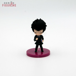 Figurine d'occasion et officielle de Hibari Kyoya en PVC qui mesure environ 7,5 centimètres de haut. Hibari semble serein avec sa bague au doigt et sa boîte Vongola dans l'autre main. Il s'agit d'un objet d'occasion en parfait état. Le fabricant est Takara Tomy A.R.T.S, vendu sans boîte.