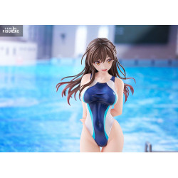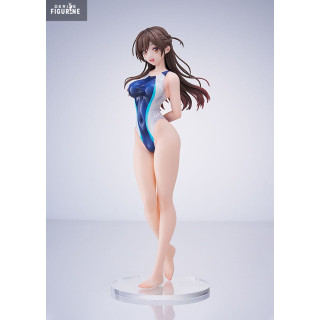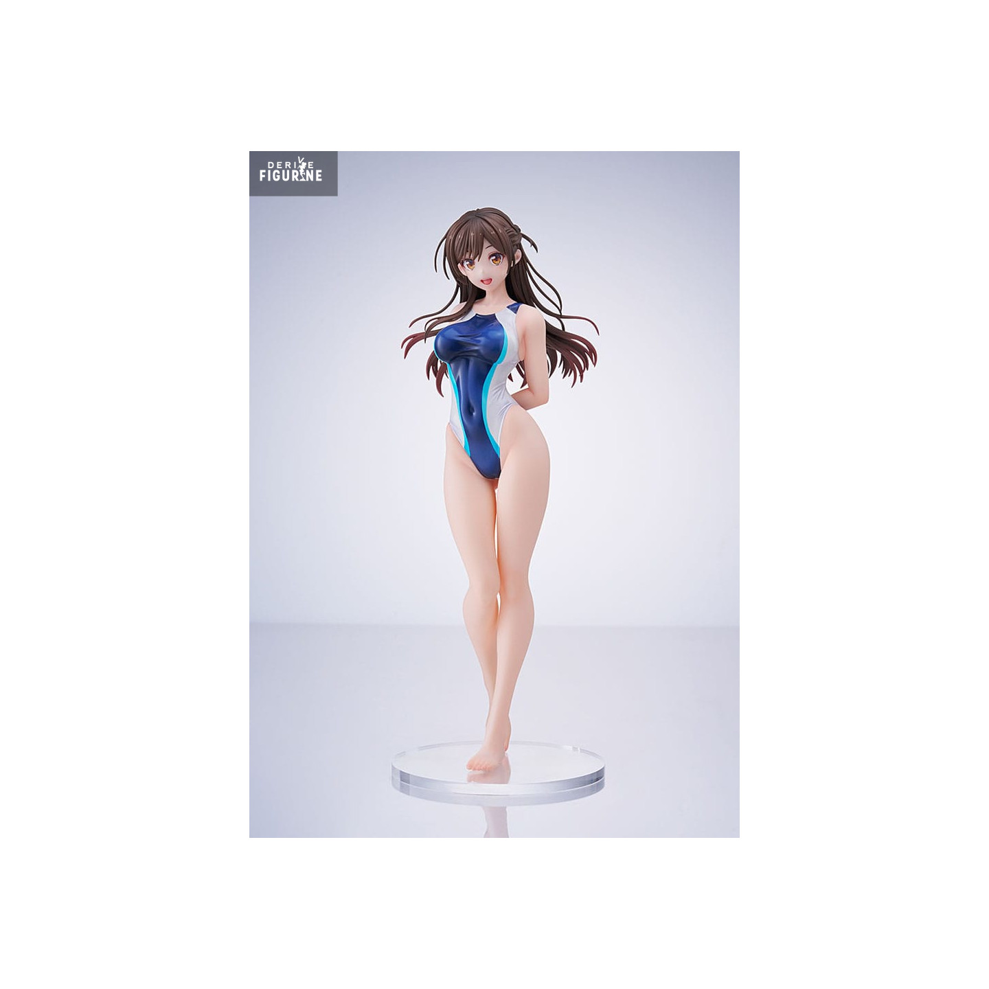 Figurine officielle de Mizuhara Chizuru Light Blue Line, Swimwear en PVC mesurant environ 25 centimètres de haut, à l'échelle 1/7. Le fabricant est Amakuni.
