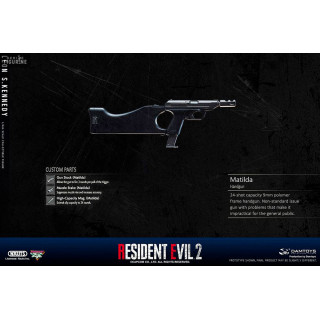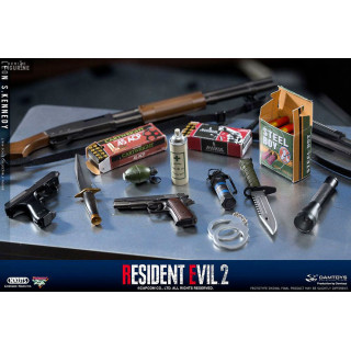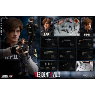 Leon Scott Kennedy est un personnage récurrent de la licence Resident Evil. Alors qu'il n'est encore qu'un jeune policier, il se retrouve propulsé à Raccoon City pour affronter les ravages du Virus G, qui transforme les humains en zombies. Heureusement, il a prévu un attirail assez important avec des armes, des munitions, des grenades et même des clés. Pour ajouter au réalisme, ses articulations lui permettent de prendre diverses poses et ses vêtements sont en tissu.