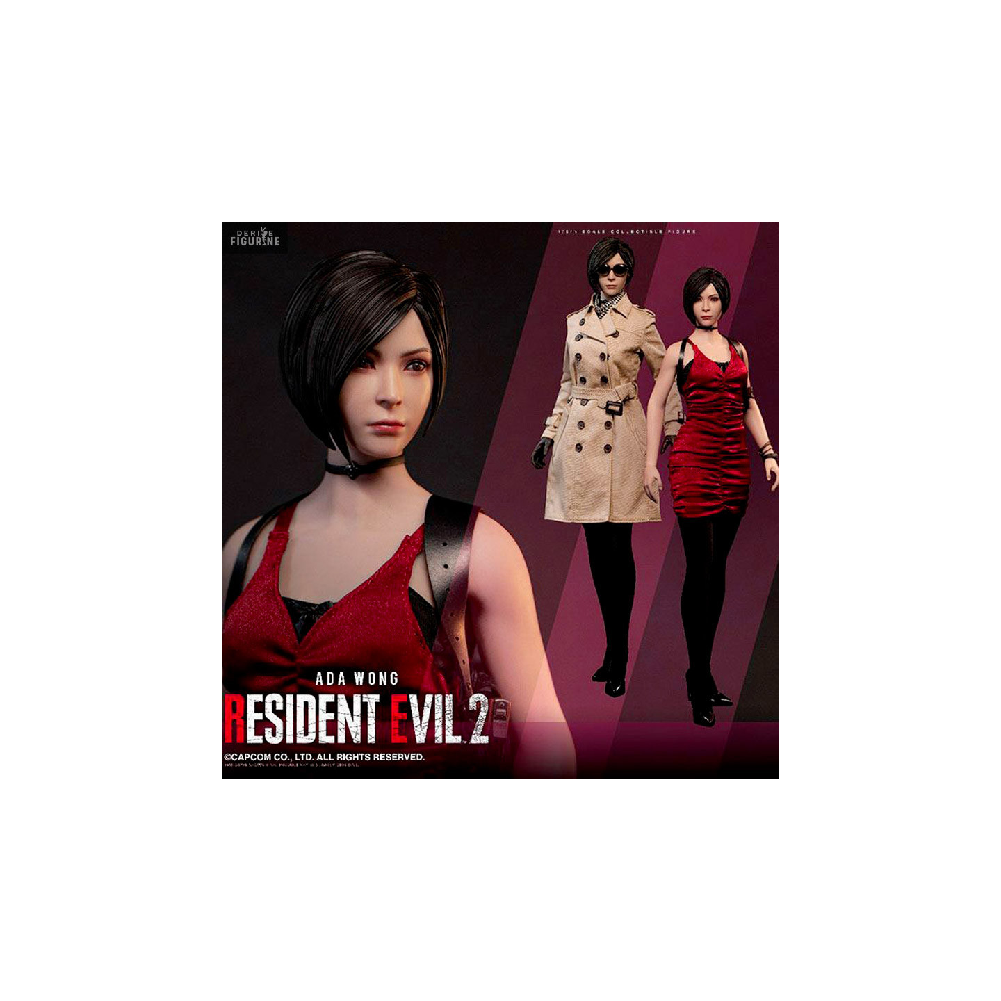 Figurine officielle de Ada Wong mesurant environ 30 centimètres de haut, à l'échelle 1/6. Le fabricant est Damtoys.