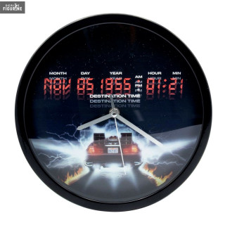 Horloge officielle de Retour vers le futur en plastique mesurant environ 24 centimètres de diamètre. Le fabricant est Joy Toy.