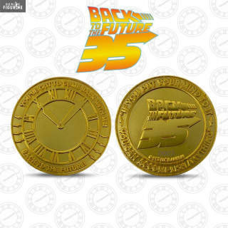 Pièce officielle de 35th Anniversary Retour vers le Futur mesurant environ 3,8 centimètres de diamètre, limitée à 1 000 exemplaires. Le fabricant est FaNaTtik.