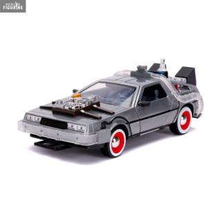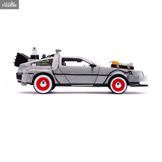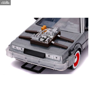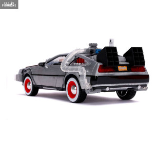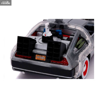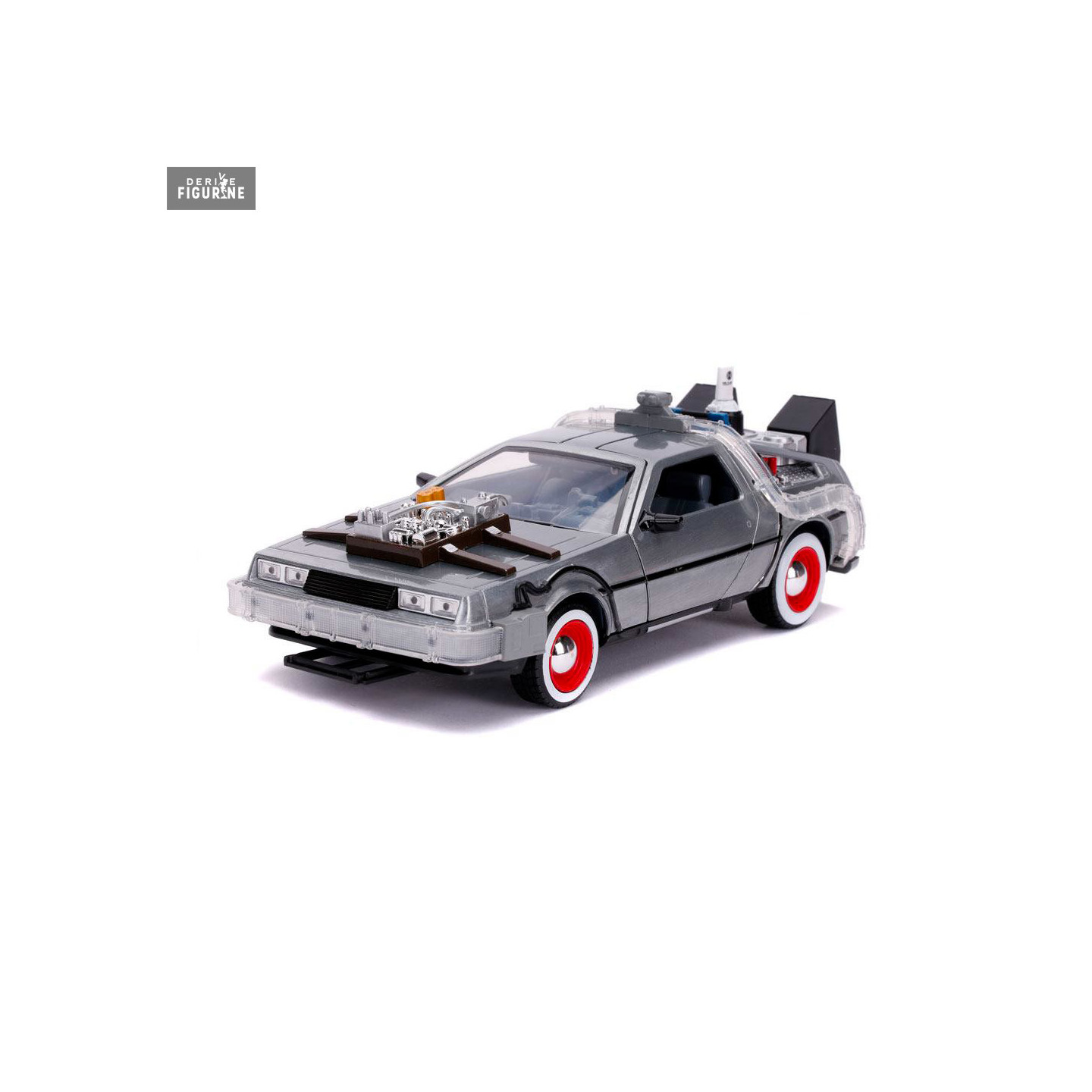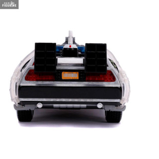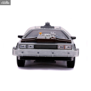 Réplique officielle de la DeLorean Time Machine en die cast et plastique injecté à l'échelle 1/24. Le fabricant est Jada Toys.