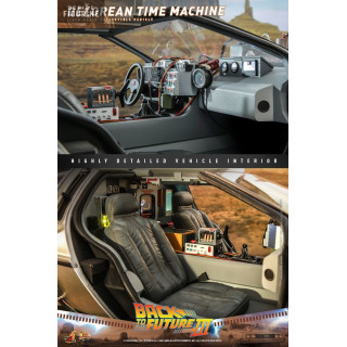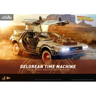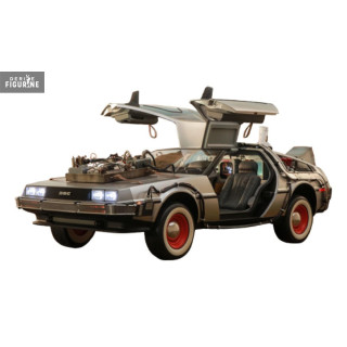 Figurine officielle de DeLorean Time Machine mesurant environ 25 x 35 x 72 centimètres, à l'échelle 1/6. Elle est issue de la collection Movie Masterpiece. Le fabricant est Hot Toys.