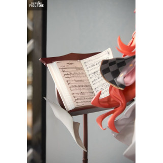 Dans l’histoire de Reverse: 1999, Sonetto incarne une personnalité captivante, enveloppée dans une aura d’énigme. Elle est représentée dans une pose gracieuse et sophistiquée, debout près d’un pupitre à partitions musicales. Sa tenue délicatement détaillée, ses longs cheveux roux ondulants, et son regard empreint de sérénité témoignent d’un soin exceptionnel apporté à chaque détail. Les éléments de la mise en scène, comme les partitions virevoltantes et le socle en forme de marches élégantes, ajoutent une profondeur visuelle qui sublime encore davantage la figurine.