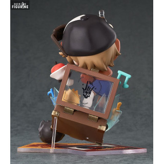 Cette figurine au format chibi, issue de la collection Qset+ et éditée par Good Smile Company, capture avec brio toute l’énergie et la personnalité déjantée de Regulus. Haute d’environ 14 centimètres et fabriquée en PVC, elle présente le personnage dans une mise en scène dynamique : posée sur un tourne-disque stylisé, entourée de notes de musique en relief, tenant une pomme croquée dans une main et une bouteille de soda dans l’autre. Le tout est accentué par une palette de couleurs vives et des éléments visuels qui évoquent l’univers du rock, comme le panneau “Regulus Rocking & Rocking” à l’arrière.