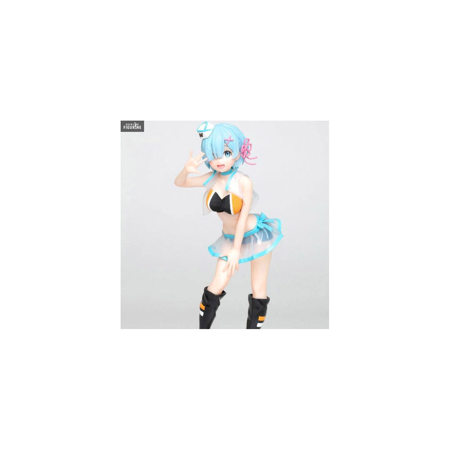 Rem est trop mignonne dans cette tenue car elle à une sorte de maillot de bain et par dessus un gilet et une jupe transparente. Elle a aussi un petit chapeau sur la tête et des chaussures hautes. Alors si vous avez envie de cette figurine dans votre collection, c'est la bonne occasion pour vous.