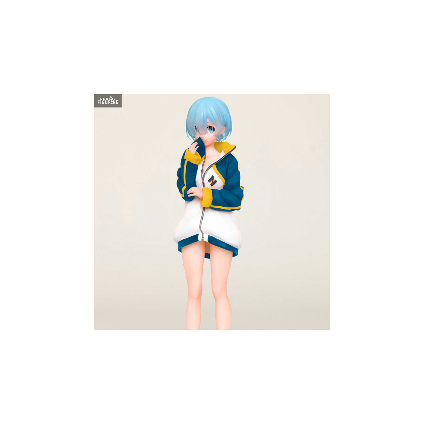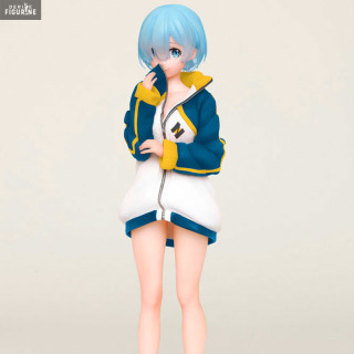 Re:Zero s'offre une nouvelle figurine de la jumelle Rem qui revient une nouvelle fois dans sa version Subaru's Jersey. Cette fois-ci, Rem propose la même pose mais sa tenue qui est déclinée dans un nouveau style de coloris, effectivement, la veste est désormais dans un ton bleu et le jaune semble ressortir beaucoup plus !