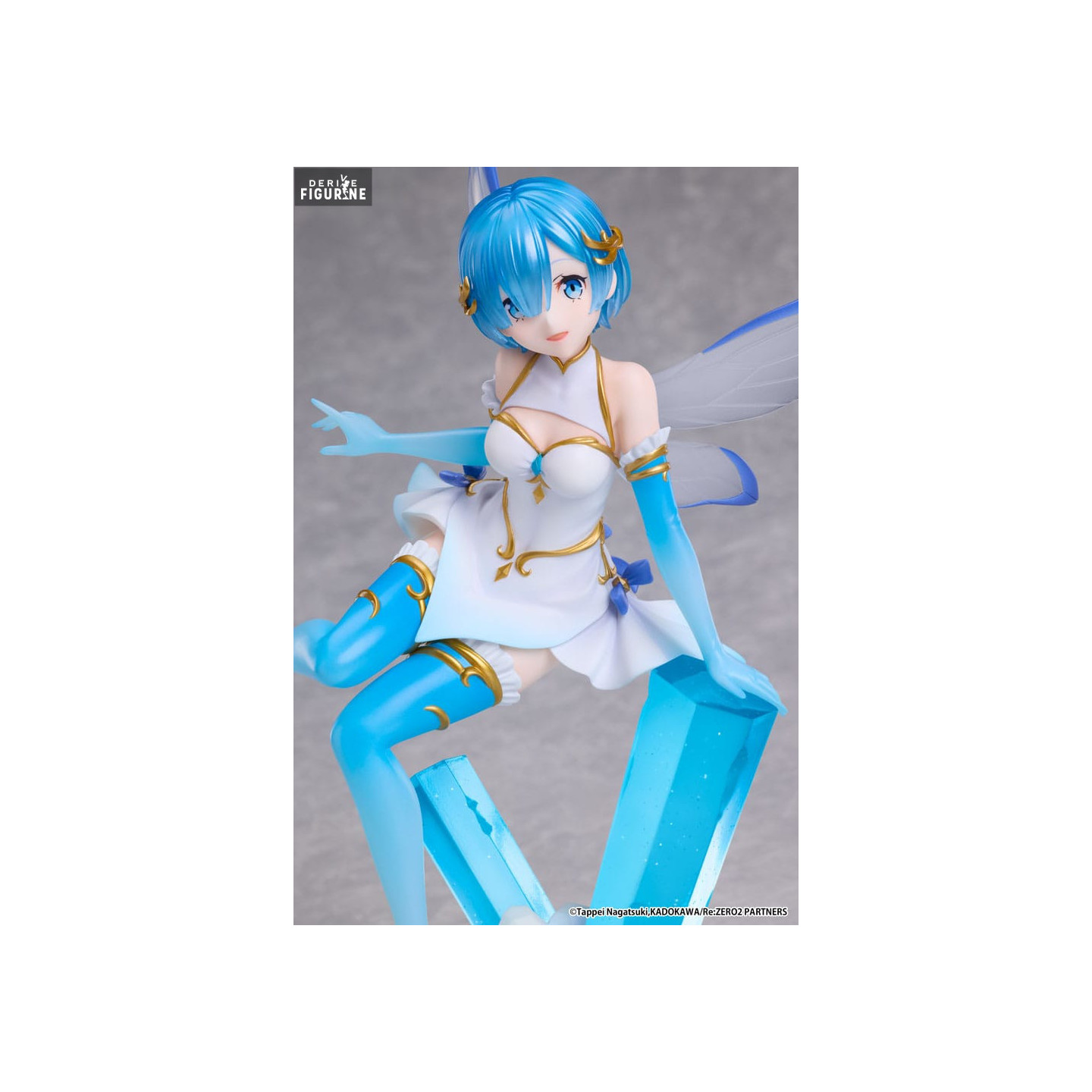 Cette figurine de Rem, intitulée "Jewel Princess", présente le personnage sous une forme féerique avec une tenue élégante et des ailes translucides qui ajoutent une touche magique. Assise sur un cristal bleuté, elle donne l'impression d'être une princesse de glace, prête à protéger son royaume. Les détails raffinés de sa tenue et de ses ailes sont magnifiquement réalisés, ce qui rend cette pièce incontournable pour les collectionneurs. Avec ses 21 centimètres de hauteur, cette figurine à l'échelle 1/7 est fabriquée par Elcoco et capture parfaitement l'essence de Rem tout en lui ajoutant une touche d'élégance fantastique.