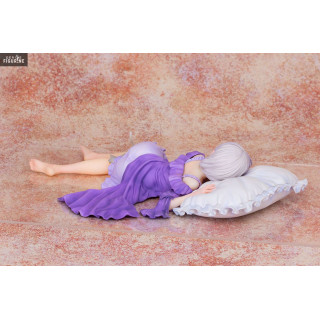 Dans Re:ZERO -Starting Life in Another World, Emilia est ravissante et charmante demi-elfe. C'est le marquis Mathers qui la protège et elle compte bien tenter de devenir la Reine de Lugnica. Elle est ici allongée en ayant la tête posée sur son oreiller.