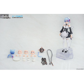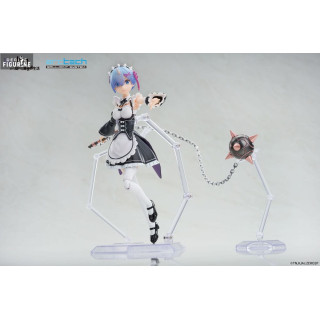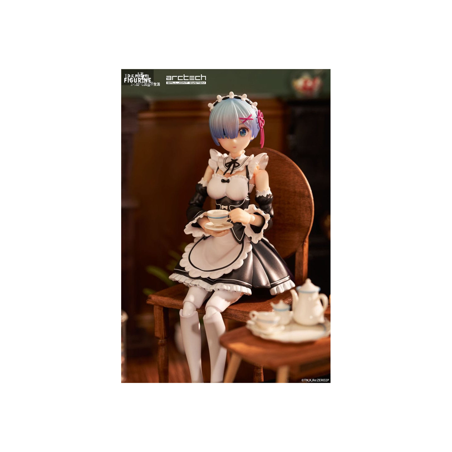 La figurine articulée de Rem proposée par Apex Innovation appartient à la collection Arctech, reconnue pour ses articulations précises et discrètes, permettant une grande liberté de pose. D’une hauteur de 20 centimètres à l’échelle 1/8, cette version offre un rendu fidèle du personnage, aussi bien dans ses moments de service que dans ses scènes de combat. Elle est livrée avec un large éventail d’accessoires : visages et mains interchangeables, massue cloutée avec chaîne articulée, plateau de service complet (théière, tasses, assiettes), et même une tête alternative. Chaque élément est soigneusement détaillé, des dégradés dans la chevelure bleue jusqu’aux plis de l’uniforme. Que vous préfériez Rem en version douce et attentive ou en guerrière déterminée, cette figurine vous permet de l’exposer selon votre vision du personnage.