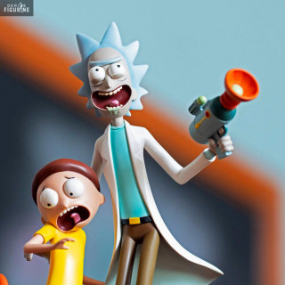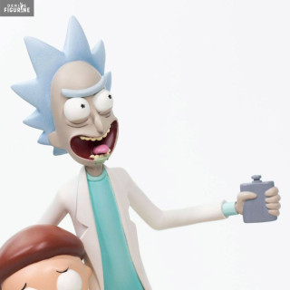 Figurine officielle de Rick et Morty en résine mesurant environ 30 centimètres de haut. Le fabricant est Mondo.