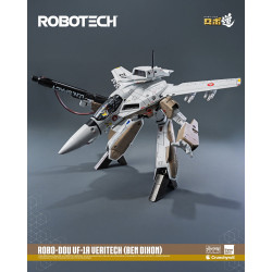 Figurine officielle du VF-1A Veritech (Ben Dixon) en PVC/métal mesurant environ 20 centimètres de haut. Elle est issue de la collection ROBO-DOU. Le fabricant est ThreeZero.
