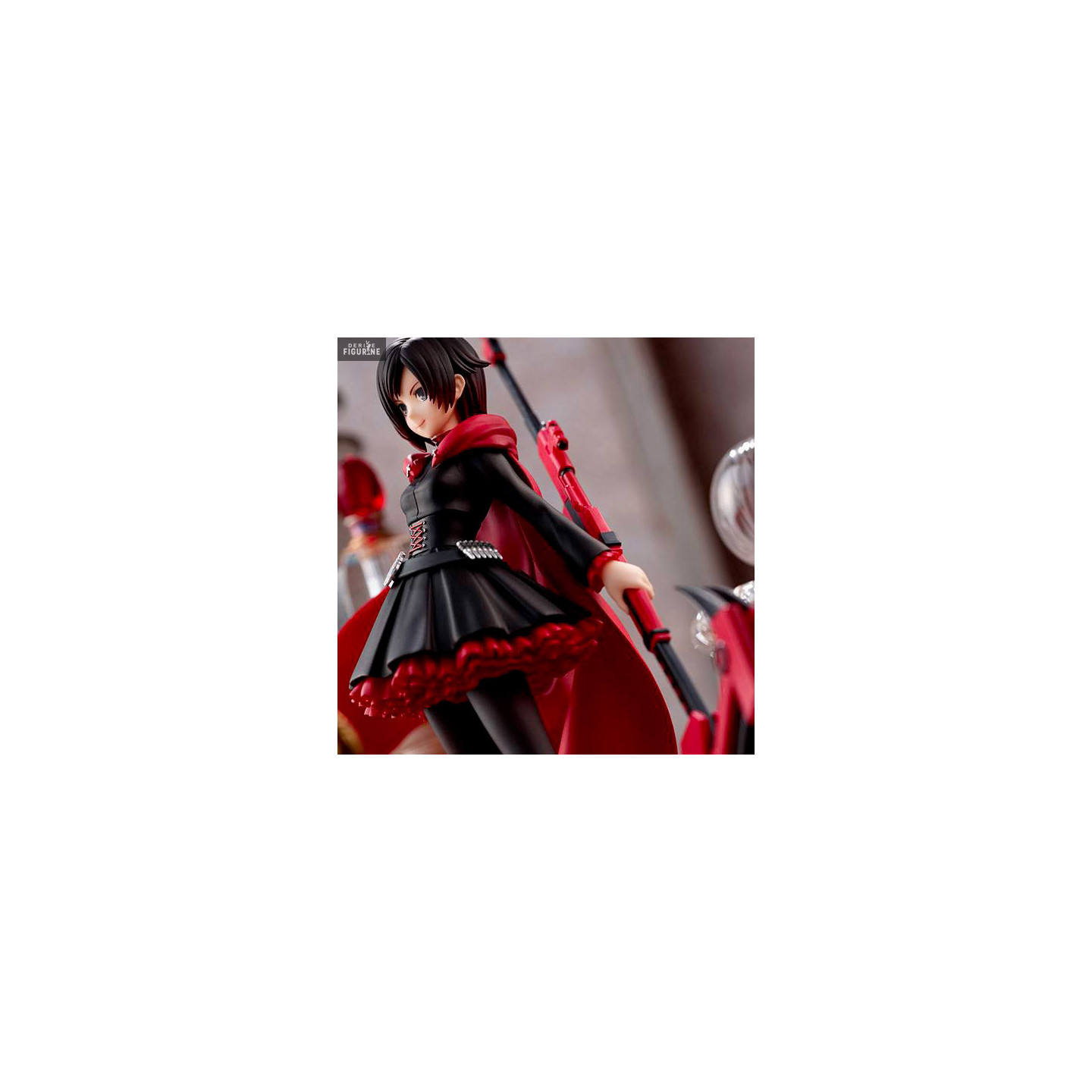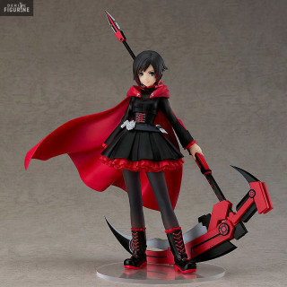 Ruby Rose est le personnage principal de RWBY dont l'arme de prédilection est assez complexe puisqu'il s'agit d'une faux-fusil sniper de haut calibre. Elle fait partie de l'académie de Beacon en tant que chasseresse et vous l'avez sous les yeux dans sa robe rouge et noire. De plus, la version Pop Up Parade est vraiment très jolie et bien faite.