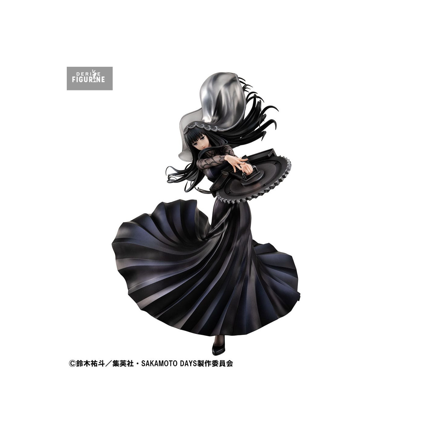 Imposante, élégante, et terriblement intrigante, Osaragi se dévoile ici dans une figurine qui capte toute la puissance de son aura mystérieuse. Vêtue d’une longue robe noire aux plis fluides et coiffée de son immense chapeau argenté, elle tourne sur elle-même avec une grâce presque surnaturelle — tout en tenant une scie circulaire aussi absurde que stylée. Un contraste total qui fonctionne à merveille, à son image.