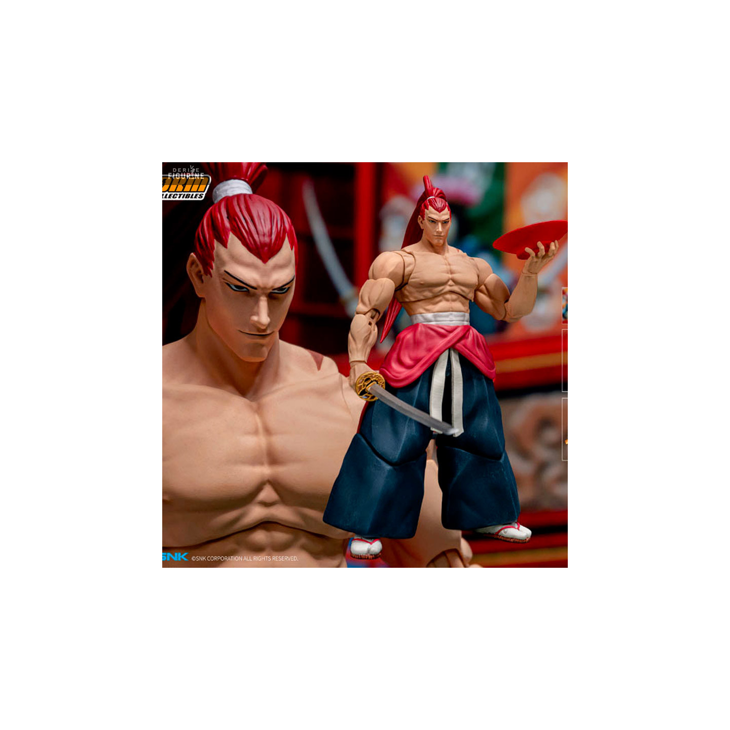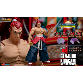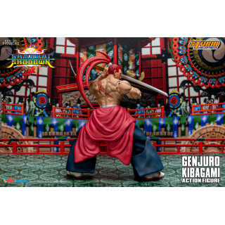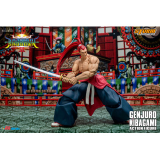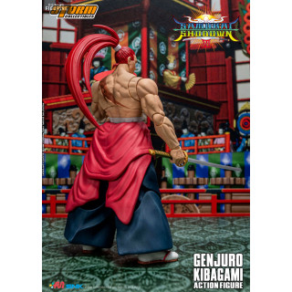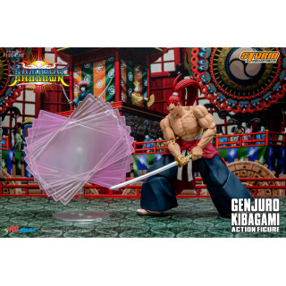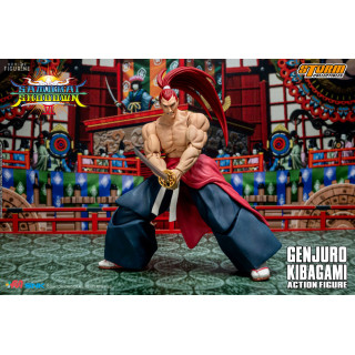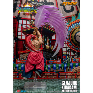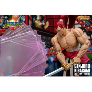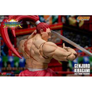 Genjuro Kibagami est un personnage que vous pouvez retrouver dans plusieurs opus des jeux Samurai Shodown, et c'est le rival de Haohmaru. Il est imposant car il est très musclé et mesure plus d'un mètre quatre-vingt. Il n'a pas peur de se battre, et prend même du plaisir à faire du mal à ses ennemis, allant parfois jusqu'à en faire un business. Ici, vous pouvez le voir lancer ses attaques les plus puissantes grâce aux accessoires et parties interchangeables.