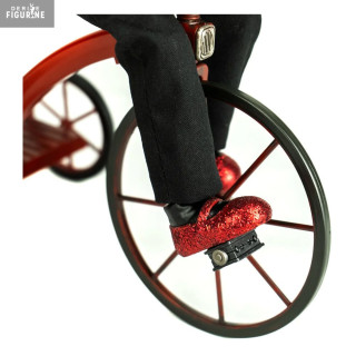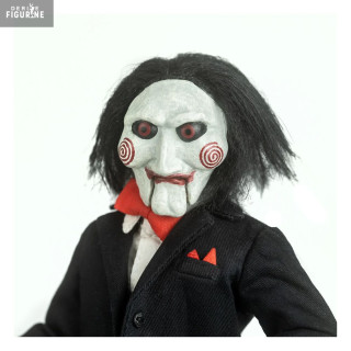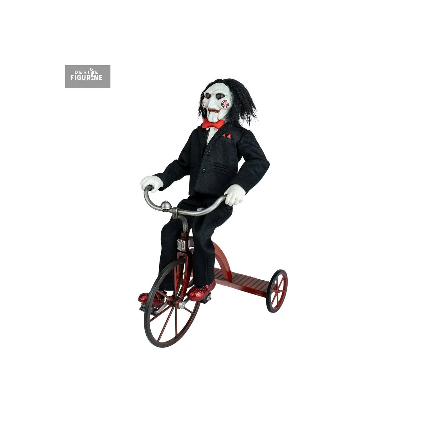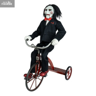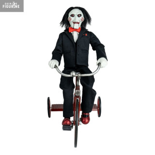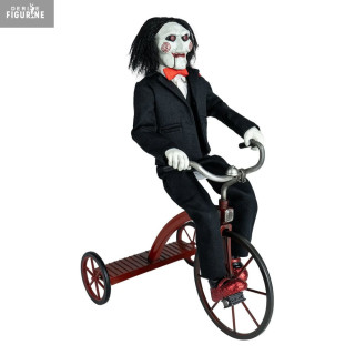 Billy est vêtu de son costume noir iconique avec nœud papillon rouge et porte ses fameux souliers rouges brillants. Le tricycle est reproduit avec soin, intégrant des éléments métalliques et une peinture fidèle au modèle du film. Parfaite pour les fans d'horreur et les collectionneurs, cette figurine capture l'aura inquiétante du personnage. Une pièce incontournable pour recréer l'ambiance angoissante de Saw.