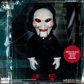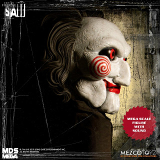 Dans la saga de films Saw, une marionnette du nom de Billy revient souvent, car elle sert à John Kramer a communiquer avec ses sujets de test. Vous pouvez donc la retrouver dans une version Mega Scale qui en plus de ça parle... Alors si vous aimez vous faire peur, ou effrayer les autres, c'est parfait pour vous.