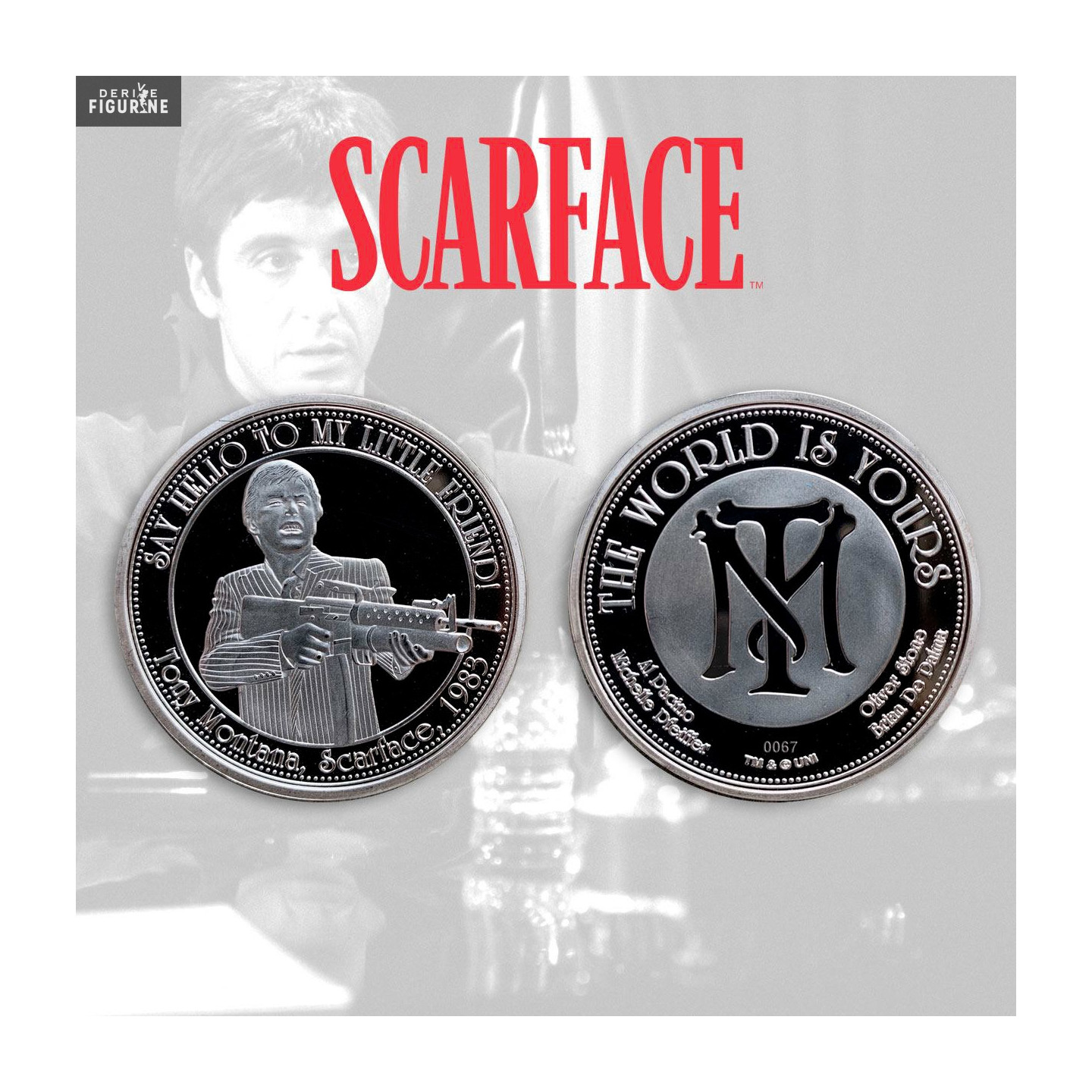 Pièce officielle de Scarface mesurant environ 3,8 centimètres de diamètre, limitée à 9 995 exemplaires. Le fabricant est FaNaTtik.