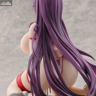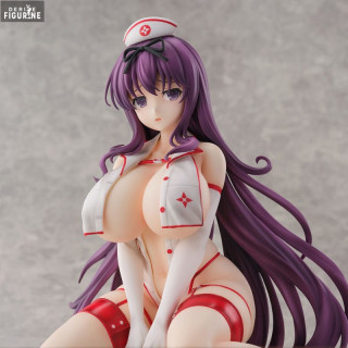 Connue pour sa personnalité timide mais complexe, Murasaki est magnifiquement représentée. Ses longs cheveux violets encadrent son visage tandis qu'elle pose avec un regard soignant et séducteur, invitant les spectateurs dans son monde énigmatique. Son uniforme d'infirmière, minutieusement détaillé avec des accents rouge vif et blanc, met en valeur sa silhouette voluptueuse, faisant de cette figurine un élément remarquable.